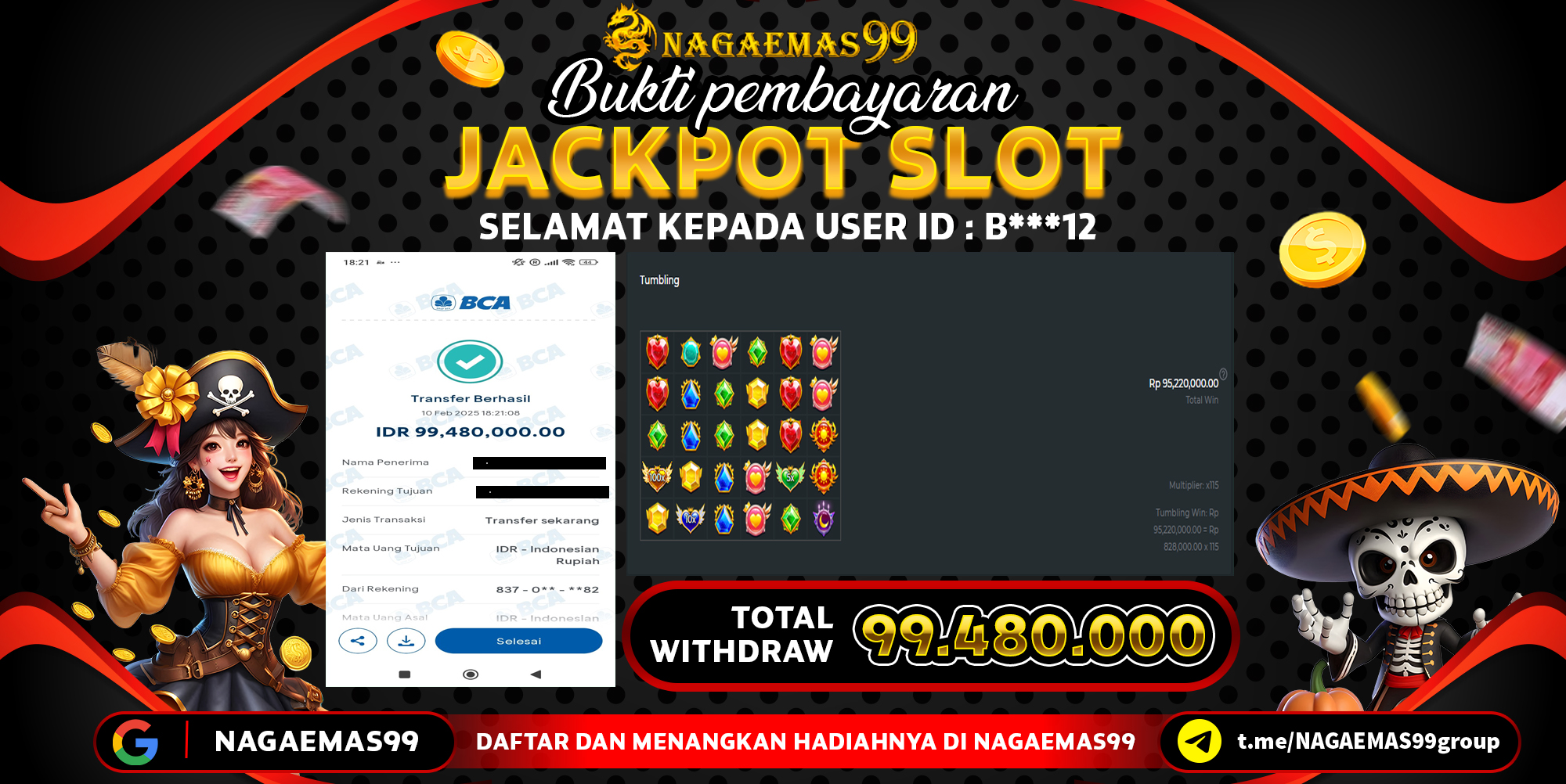 Selamat atas kemenangan User ID : B***12, yang telah berhasil mendapatkan kemenangan di permainan SLOT STARLIGHT PRINCESS dengan kemenangan sebesar Rp99.480.000,- . Setelah mengisi formulir withdraw, hanya dalam jangka waktu 2 – 5 menitan tim layanan pelanggan NAGAEMAS99 telah berhasil mengirimkan semua saldo kemenangan ke User ID tersebut.