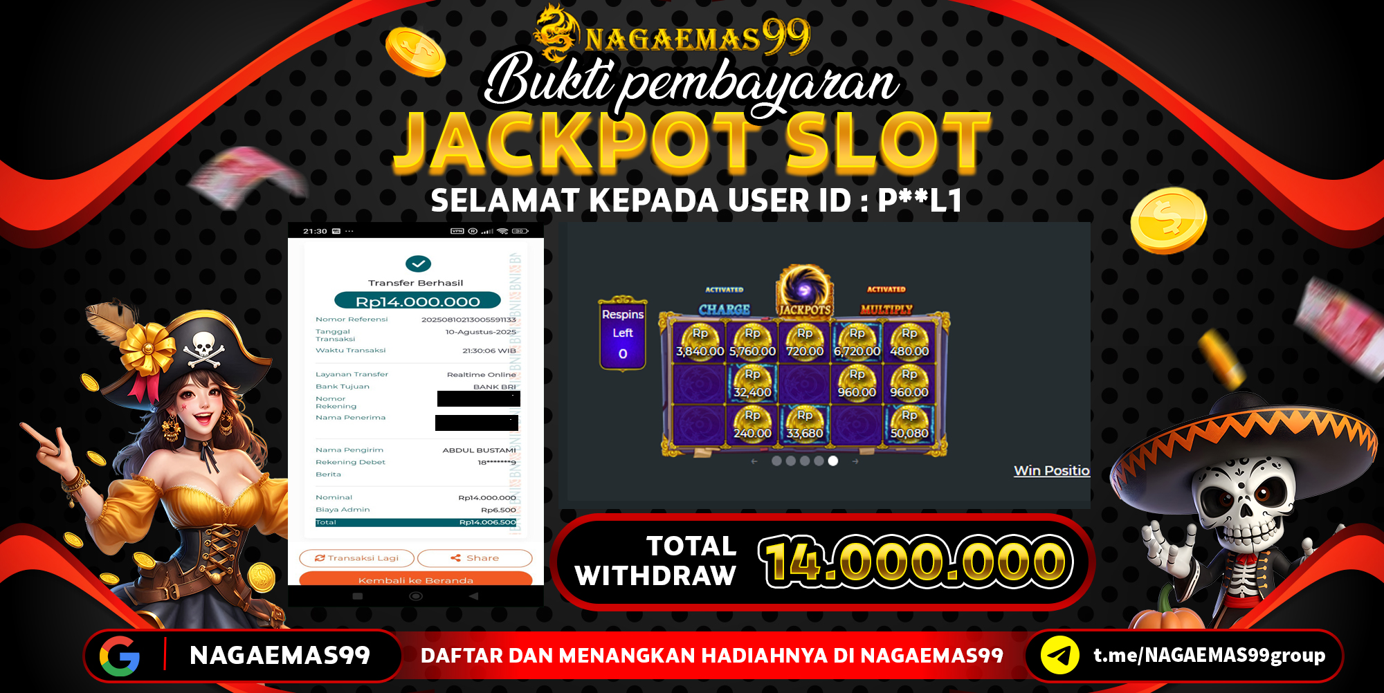 Selamat atas kemenangan User ID :P**L1, yang telah berhasil mendapatkan kemenangan di permainan SLOT SPELLMASTER dengan kemenangan sebesar Rp14.000.000,- . Setelah mengisi formulir withdraw, hanya dalam jangka waktu 2 – 5 menitan tim layanan pelanggan NAGAEMAS99 telah berhasil mengirimkan semua saldo kemenangan ke User ID tersebut.