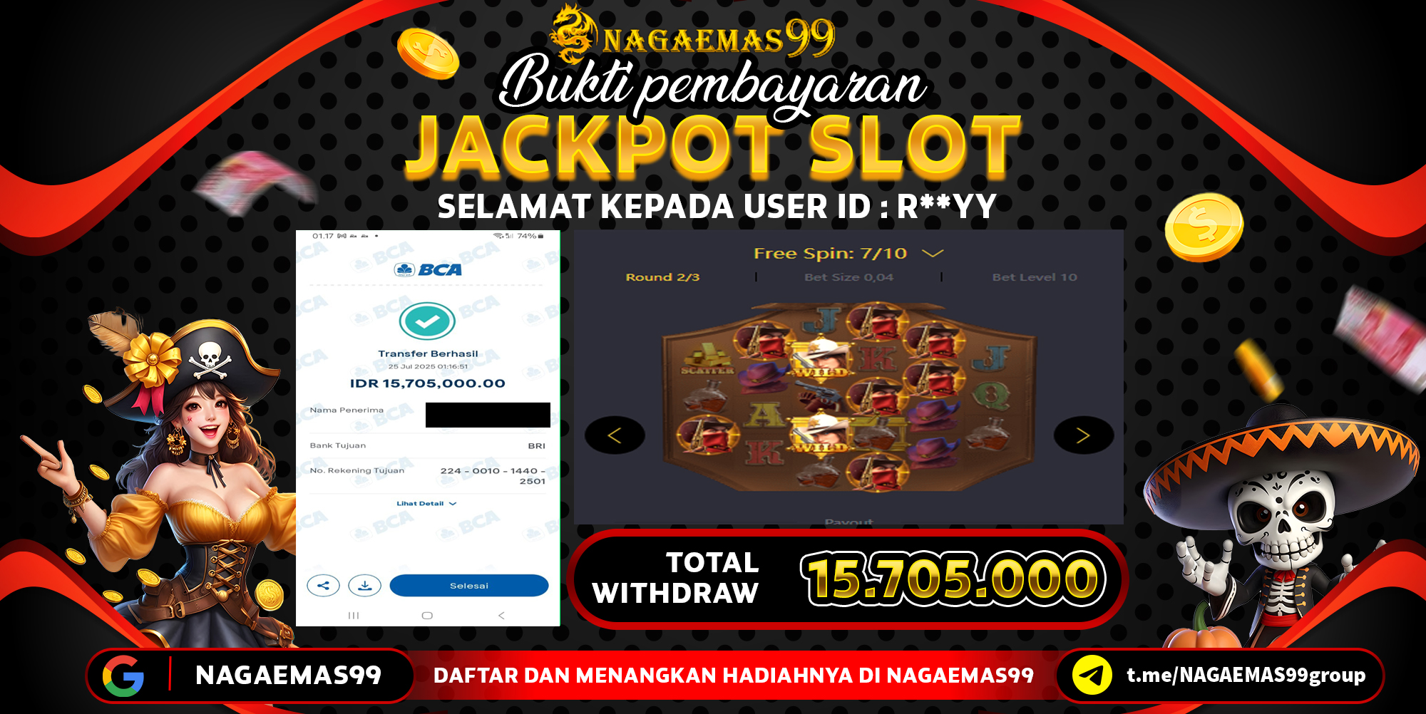 Selamat atas kemenangan User ID : R**YY, yang telah berhasil mendapatkan kemenangan di permainan SLOT WILD BOUNTY SHOWDOWN dengan kemenangan sebesar Rp15.705.000,- . Setelah mengisi formulir withdraw, hanya dalam jangka waktu 2 – 5 menitan tim layanan pelanggan NAGAEMAS99 telah berhasil mengirimkan semua saldo kemenangan ke User ID tersebut.