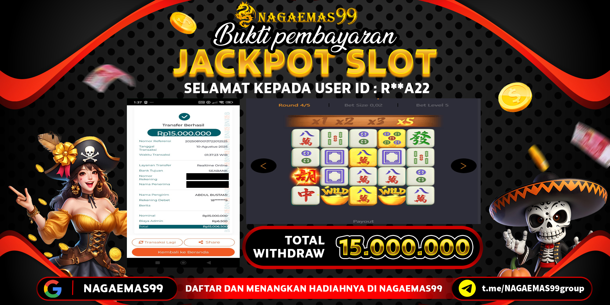 Selamat atas kemenangan User ID : R**A22, yang telah berhasil mendapatkan kemenangan di permainan SLOT MAHJONGWAYS dengan kemenangan sebesar Rp15.000.000,- . Setelah mengisi formulir withdraw, hanya dalam jangka waktu 2 – 5 menitan tim layanan pelanggan NAGAEMAS99 telah berhasil mengirimkan semua saldo kemenangan ke User ID tersebut.