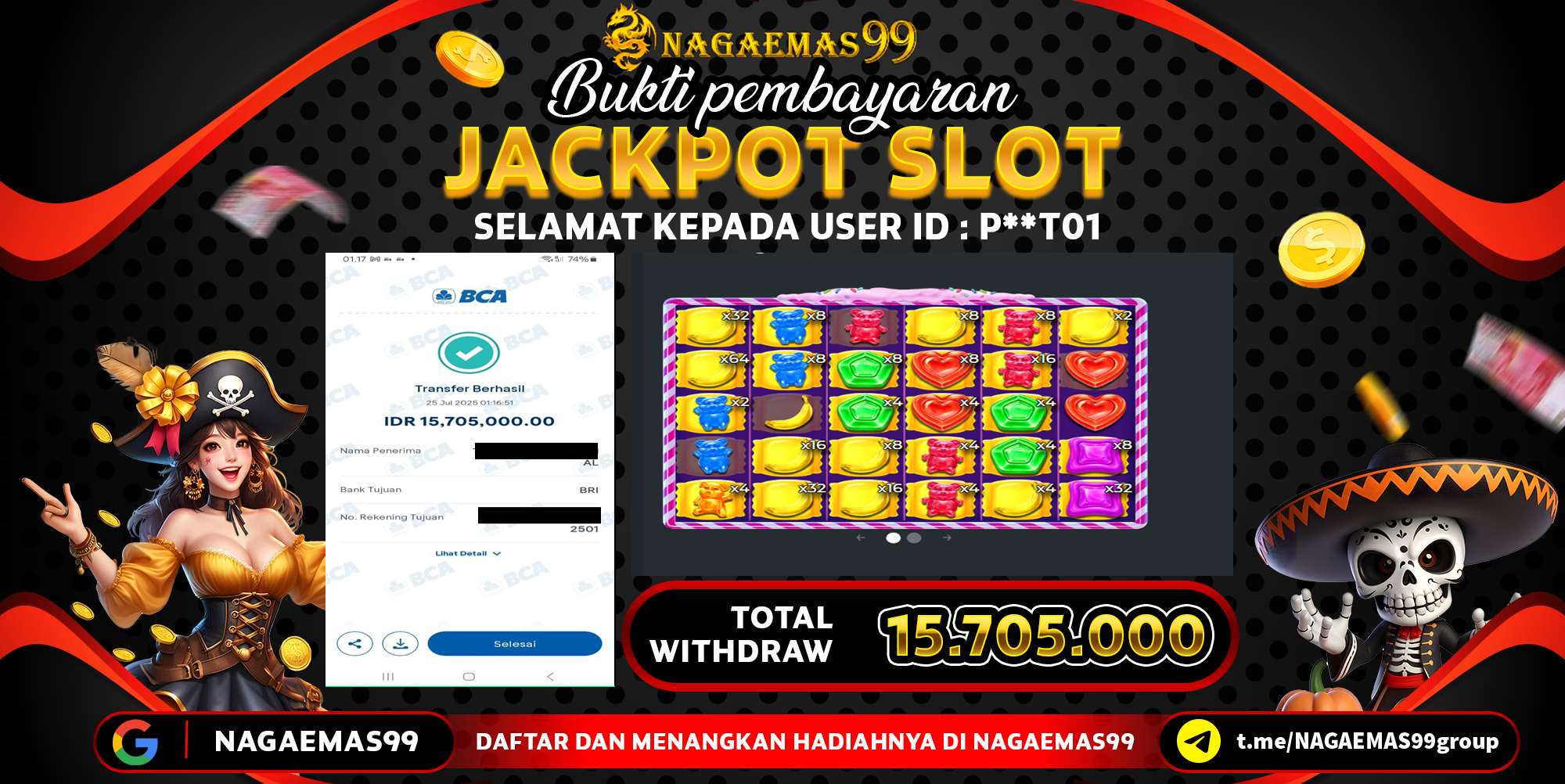 Selamat atas kemenangan User ID : P**T01, yang telah berhasil mendapatkan kemenangan di permainan SLOT FRUITY CANDY dengan kemenangan sebesar Rp15.705.000,- . Setelah mengisi formulir withdraw, hanya dalam jangka waktu 2 – 5 menitan tim layanan pelanggan NAGAEMAS99 telah berhasil mengirimkan semua saldo kemenangan ke User ID tersebut.