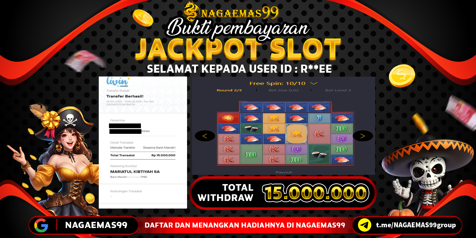 Selamat atas kemenangan User ID : R**EE, yang telah berhasil mendapatkan kemenangan di permainan SLOT LUCKY NEKO dengan kemenangan sebesar Rp15.000.000,- . Setelah mengisi formulir withdraw, hanya dalam jangka waktu 2 – 5 menitan tim layanan pelanggan NAGAEMAS99 telah berhasil mengirimkan semua saldo kemenangan ke User ID tersebut.