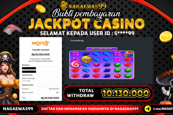 Selamat atas kemenangan User ID : S****99, yang telah berhasil mendapatkan kemenangan di permainan SLOT SWEET BONANZA 1000 dengan kemenangan sebesar Rp10.130.000,- . Setelah mengisi formulir withdraw, hanya dalam jangka waktu 2 – 5 menitan tim layanan pelanggan NAGAEMAS99 telah berhasil mengirimkan semua saldo kemenangan ke User ID tersebut. Kami ucapkan Terima Kasih sebesar-besarnya pada pemenang yang…