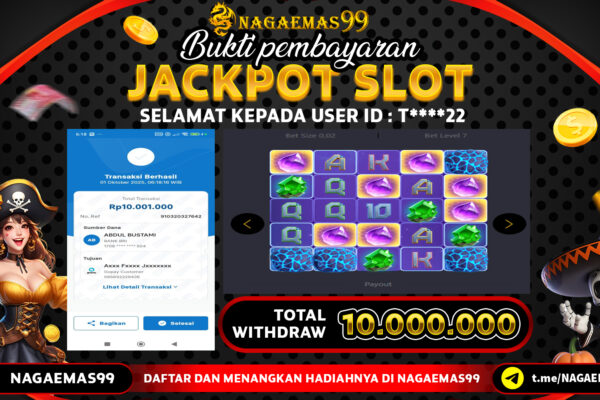 Selamat atas kemenangan User ID : T****22, yang telah berhasil mendapatkan kemenangan di permainan SLOT GALACTIC GEMS dengan kemenangan sebesar Rp10.000.000,- . Setelah mengisi formulir withdraw, hanya dalam jangka waktu 2 – 5 menitan tim layanan pelanggan NAGAEMAS99  telah berhasil mengirimkan semua saldo kemenangan ke User ID tersebut. Kami ucapkan Terima Kasih sebesar-besarnya pada pemenang yang…