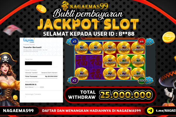 Selamat atas kemenangan User ID : B**88, yang telah berhasil mendapatkan kemenangan di permainan SLOT CHEST OF CAISHEN dengan kemenangan sebesar Rp25.000.000,- . Setelah mengisi formulir withdraw, hanya dalam jangka waktu 2 – 5 menitan tim layanan pelanggan NAGAEMAS99  telah berhasil mengirimkan semua saldo kemenangan ke User ID tersebut. Kami ucapkan Terima Kasih sebesar-besarnya pada pemenang…